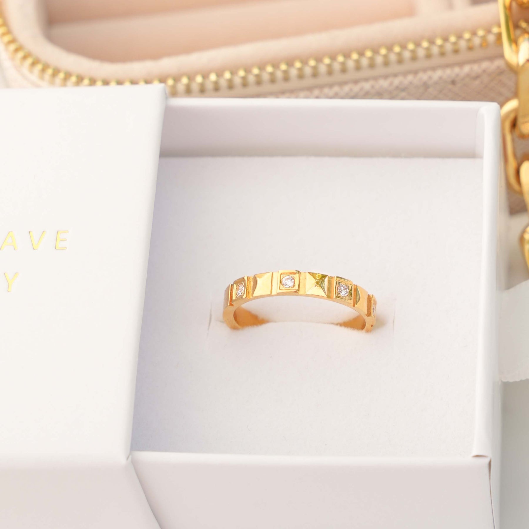 Zirconia Inset - 18k Gold plated stainless steel