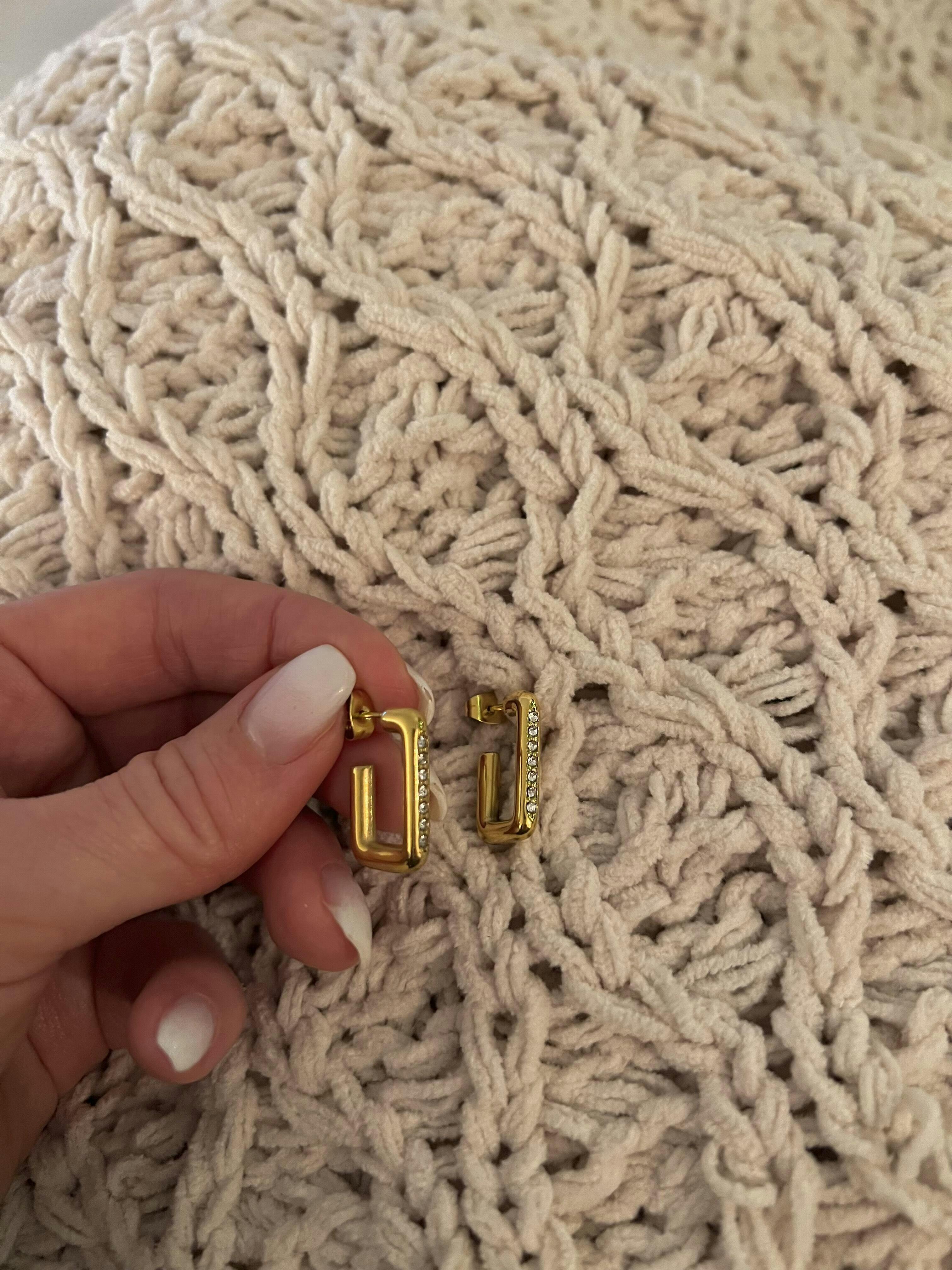 Rectangle cubic zirconia earrings 18k gold plated stainless steel