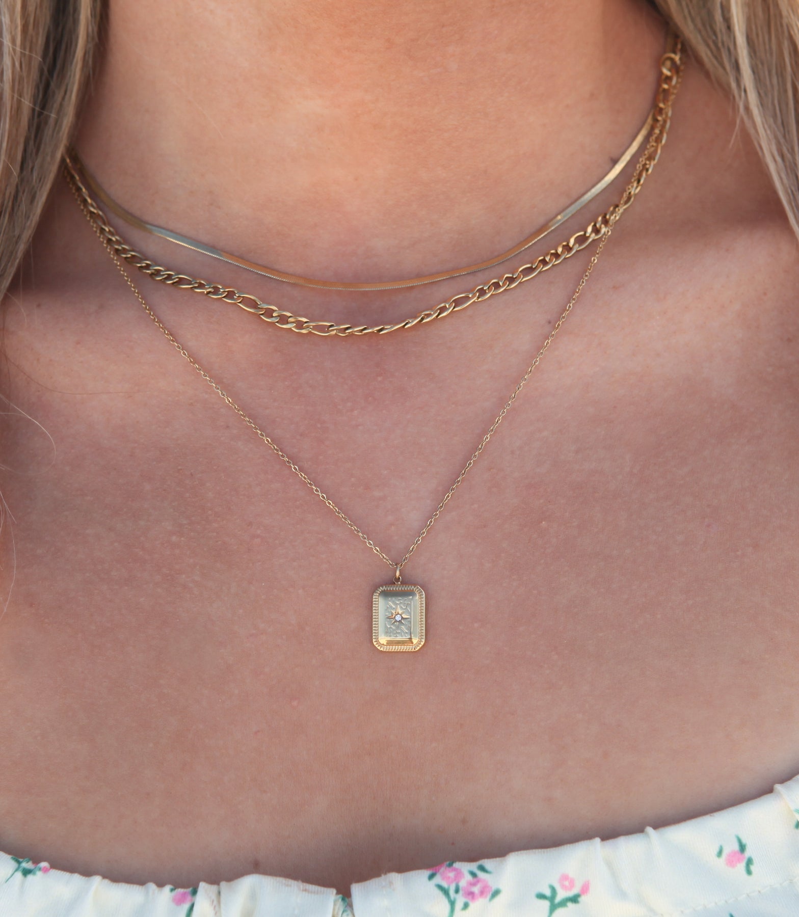 With a stainless steel chain, there's no more green discoloration on skin. Stainless steel is a metal that is very stable and does not react. Classified hypoallergenic for sensitive skin.