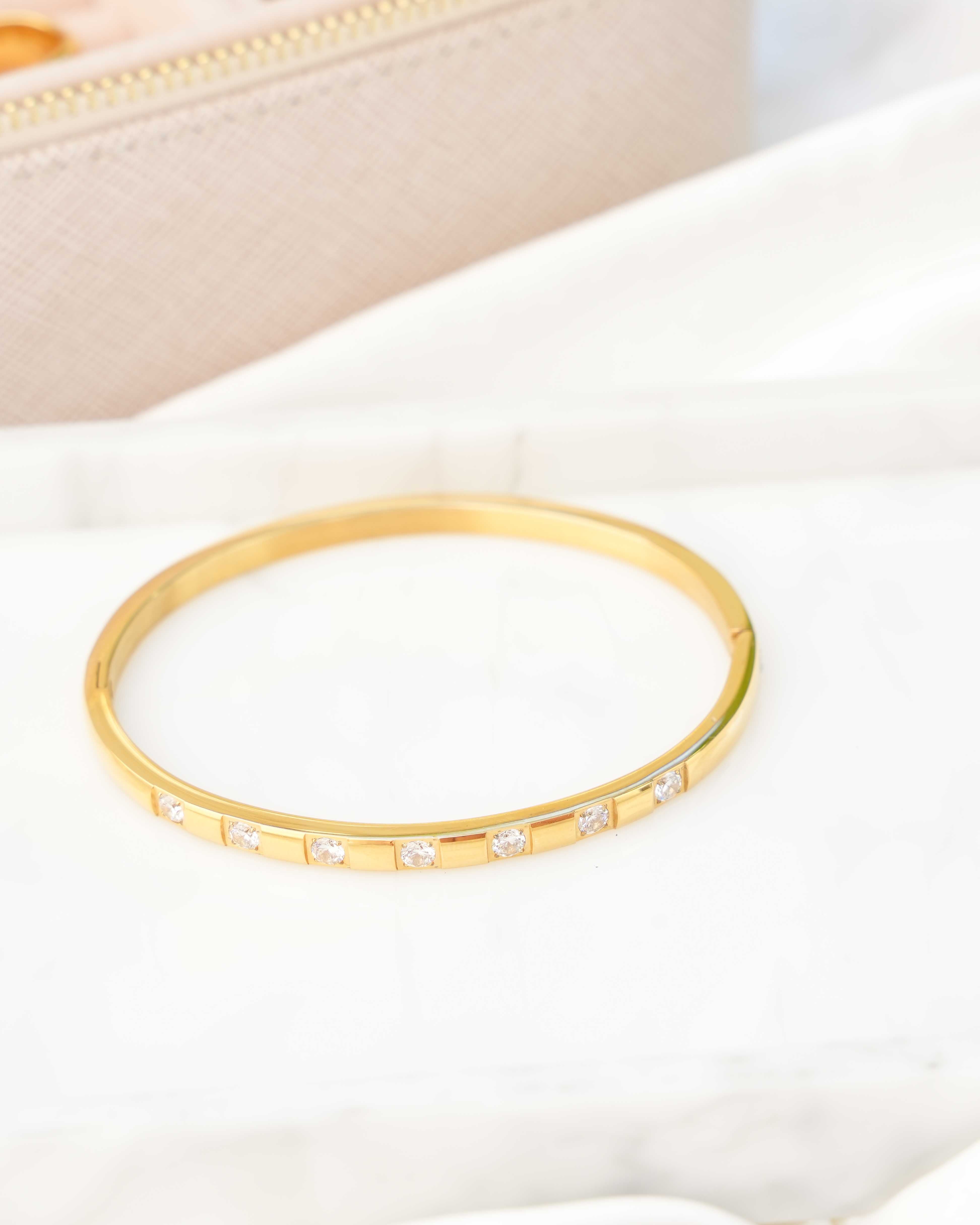 June - 18k Gold Bangle Zirconia Inset Bracelet