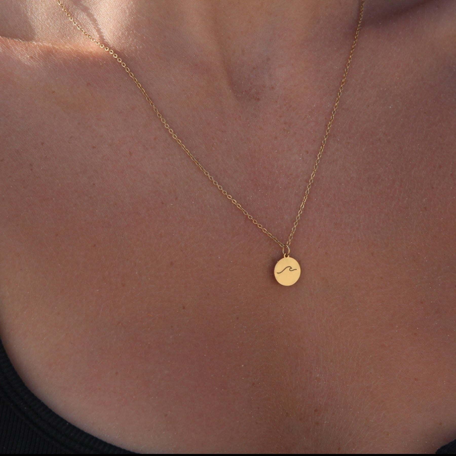 Ocean Wave Necklace Engraving - 18k Gold - Camilla Dovey Jewelry